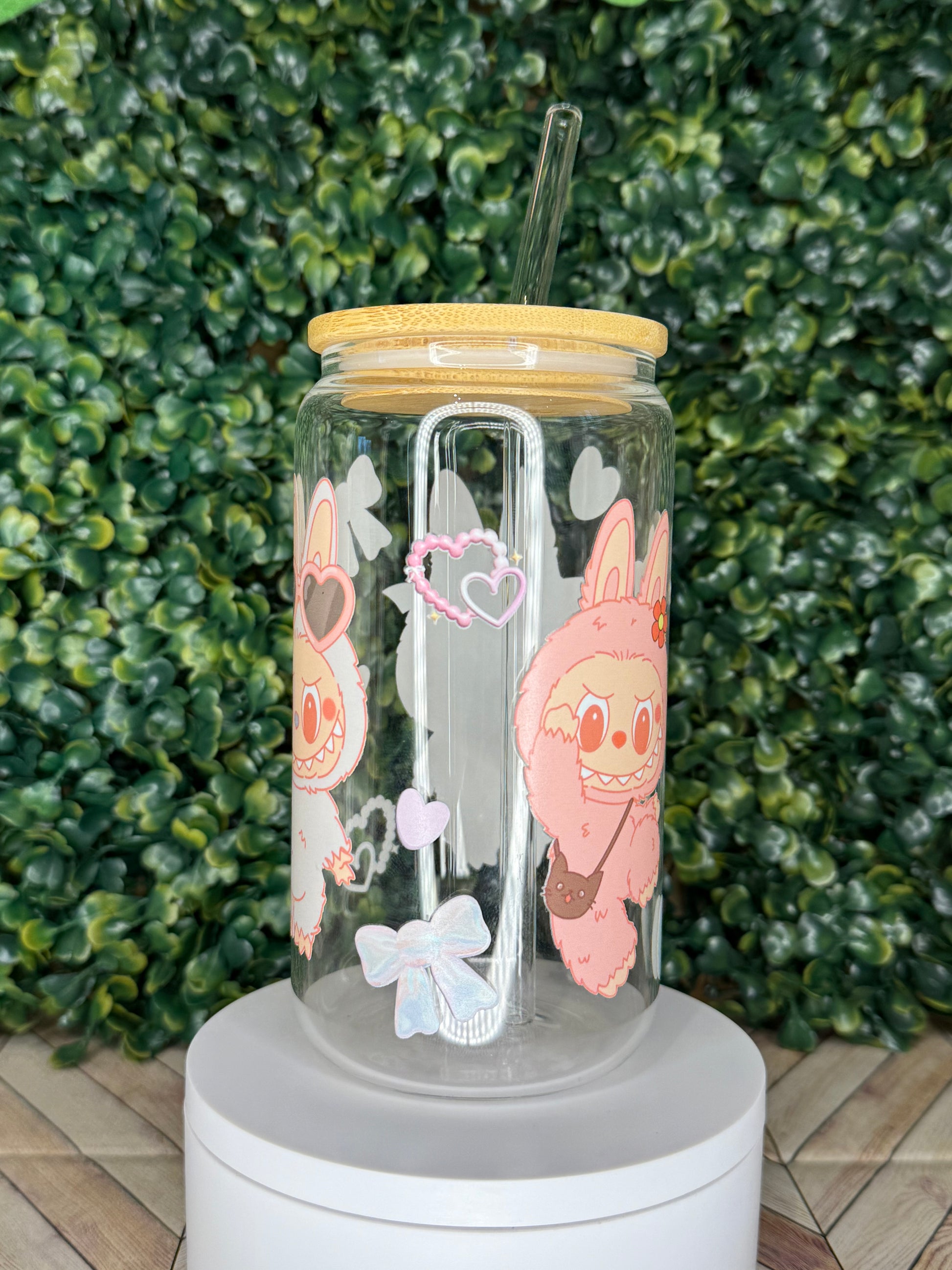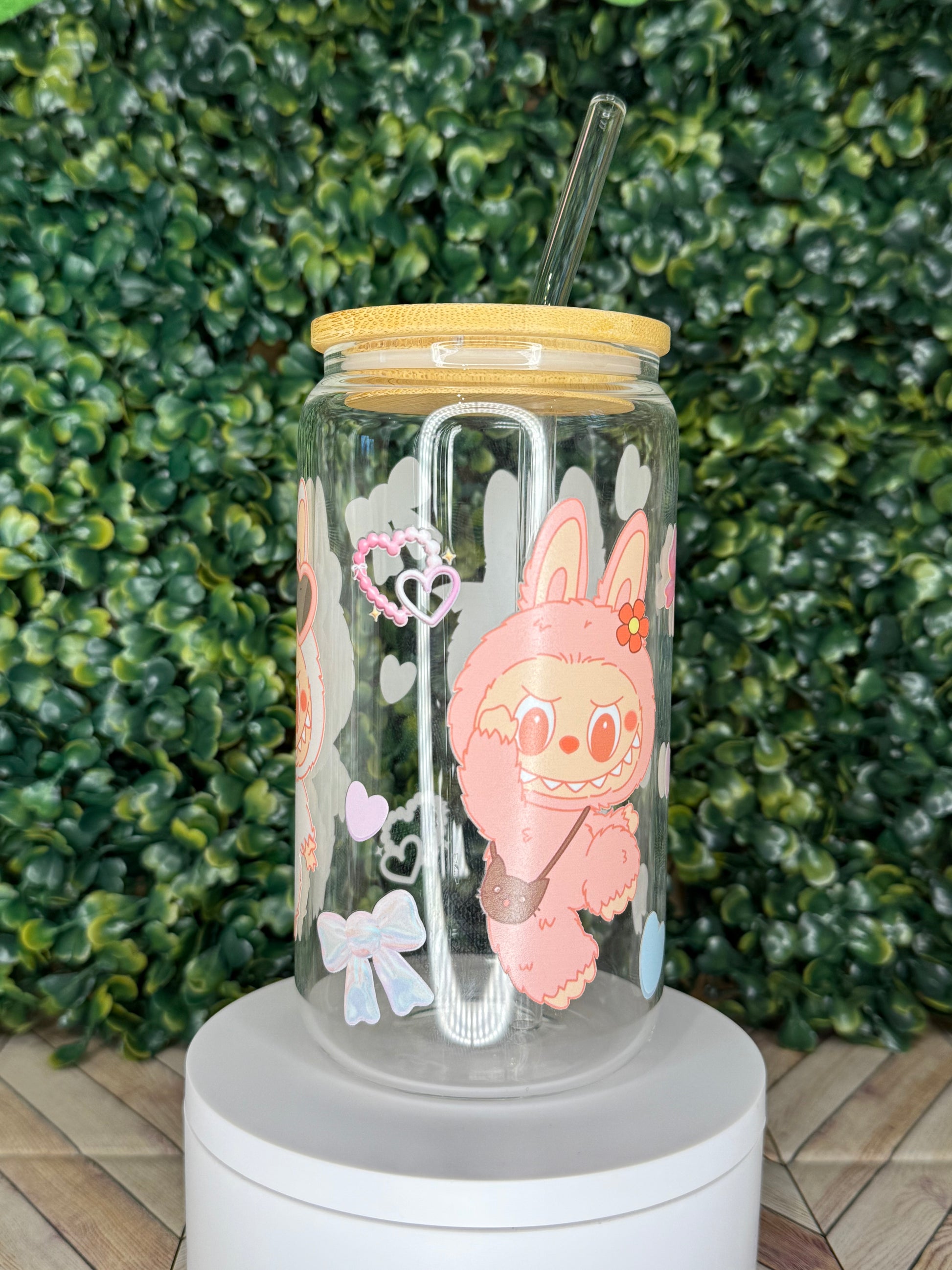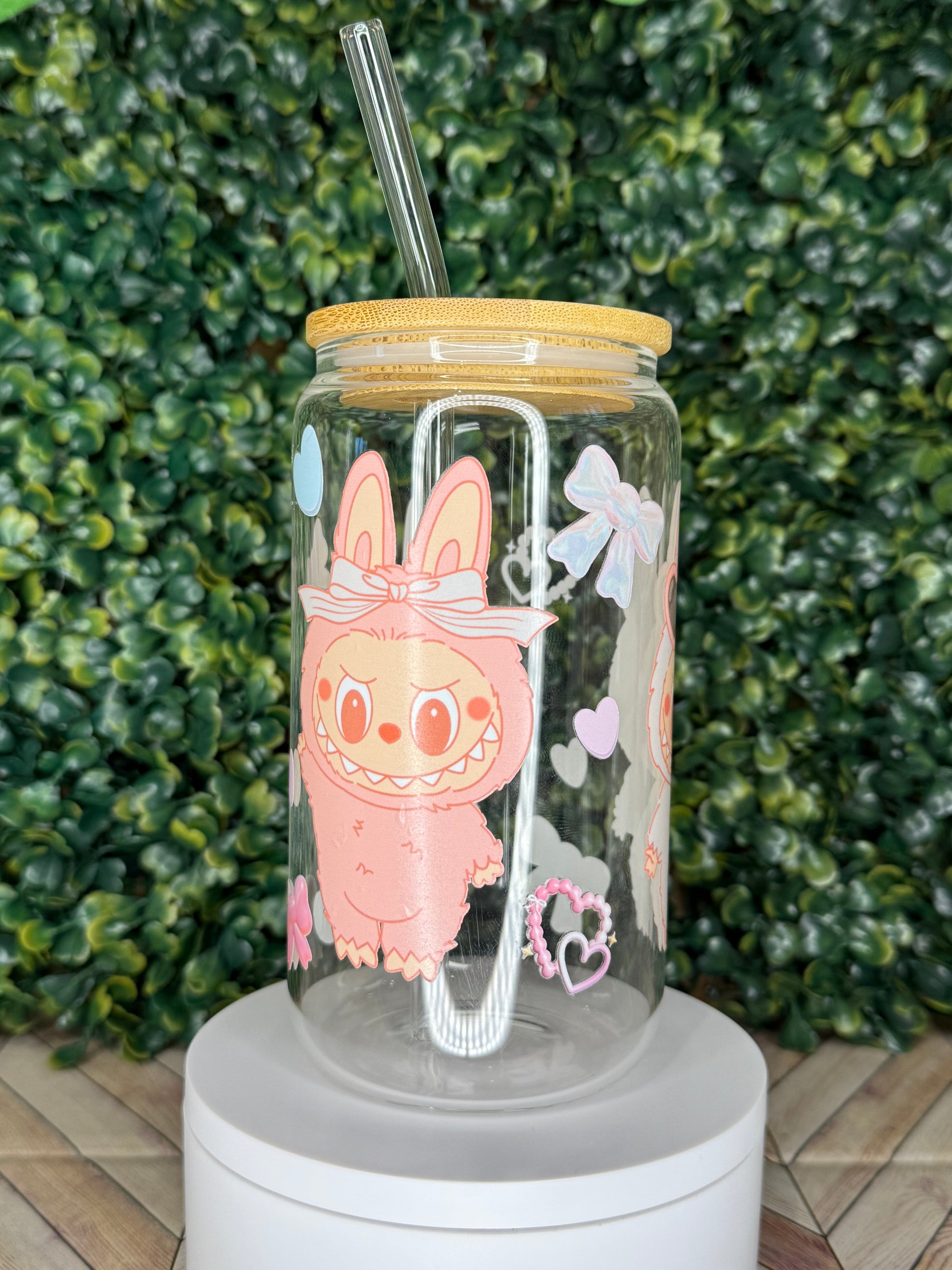 This 16oz glass can features a full wrap of Labubu characters in all their quirky glory—standing tall, striking poses, and radiating personality. It’s fun, bold, and totally collectible.