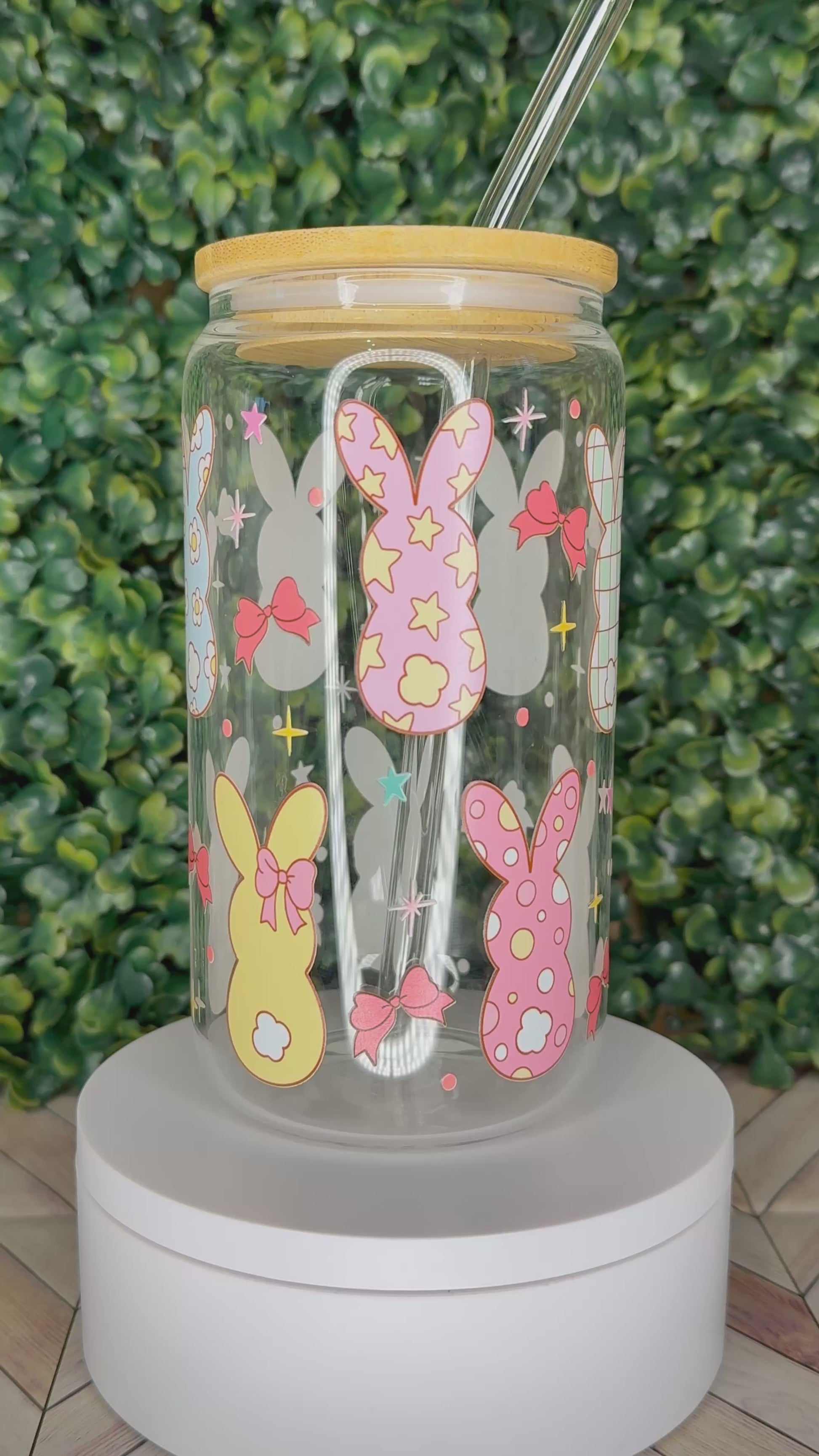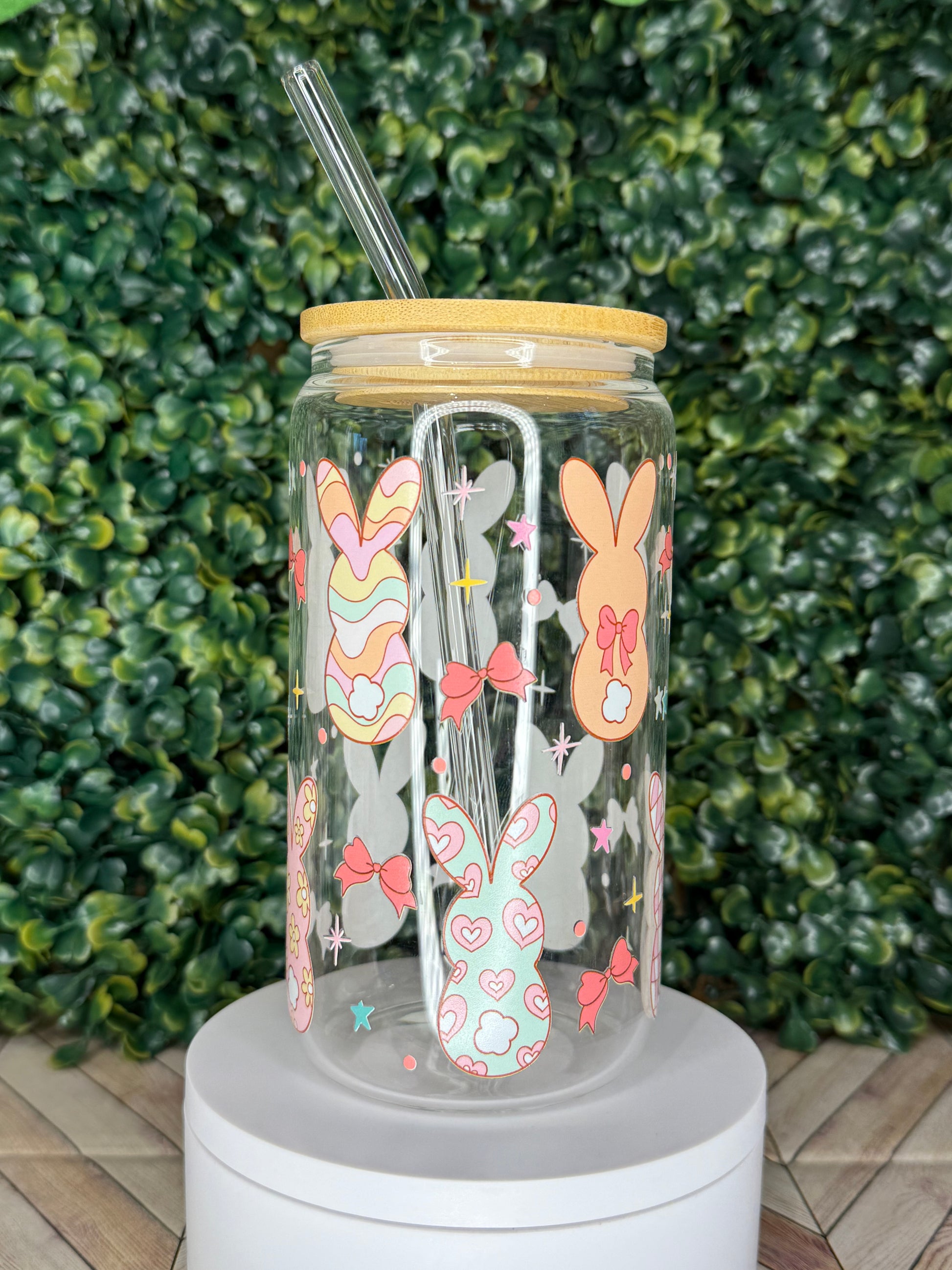 Hop into spring with this adorable Bunny Tails & Bows glass can! 🐰🌸