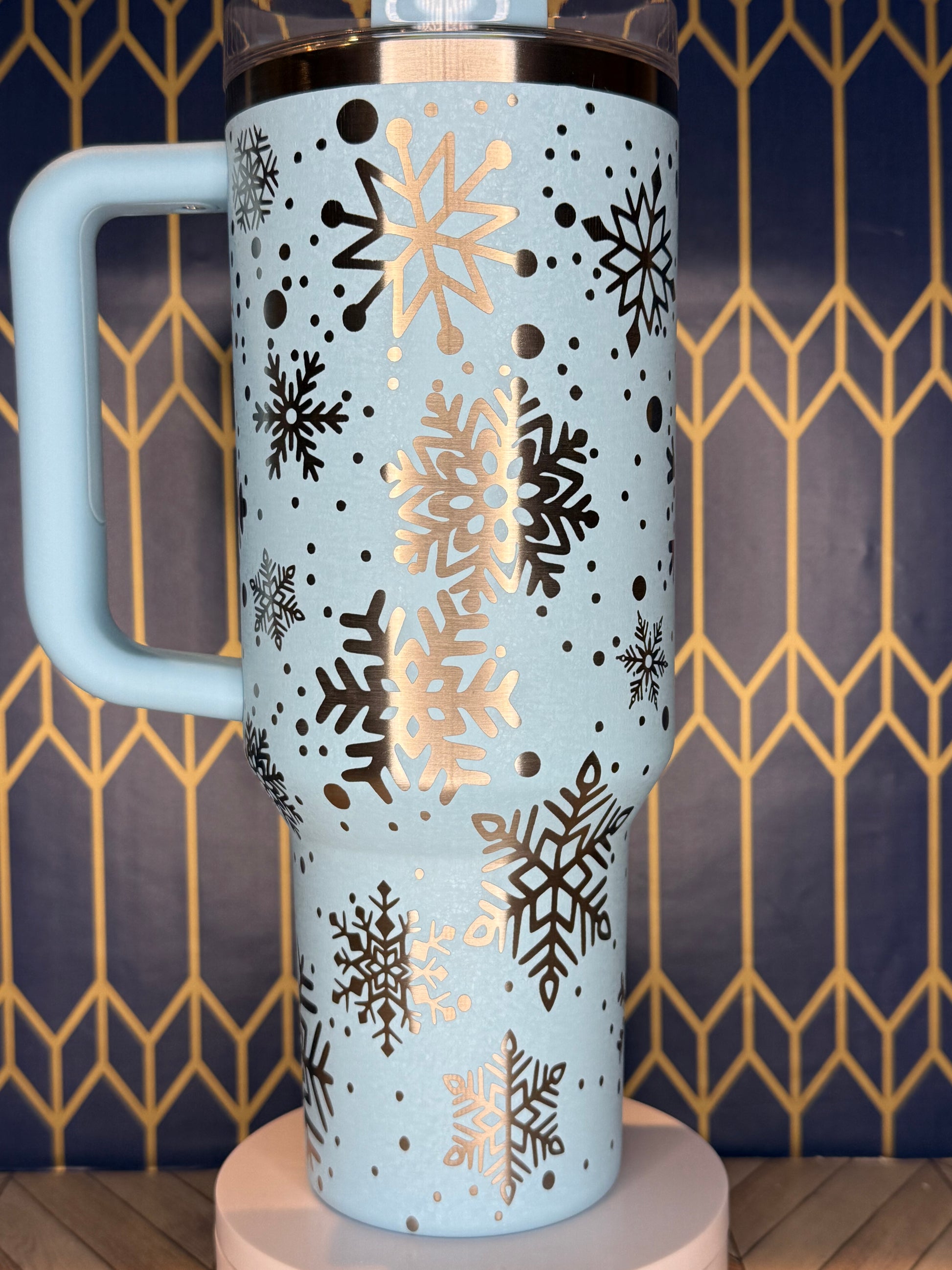 Embrace the season in style, one sip at a time! 🥶☕️ #LetItSnow #WinterTumbler #SnowflakeStyle
