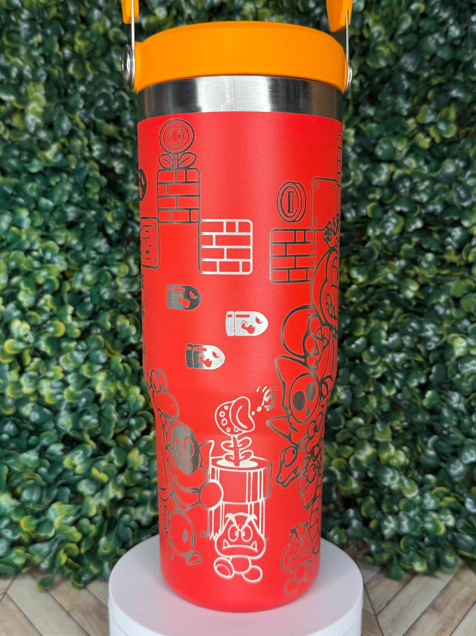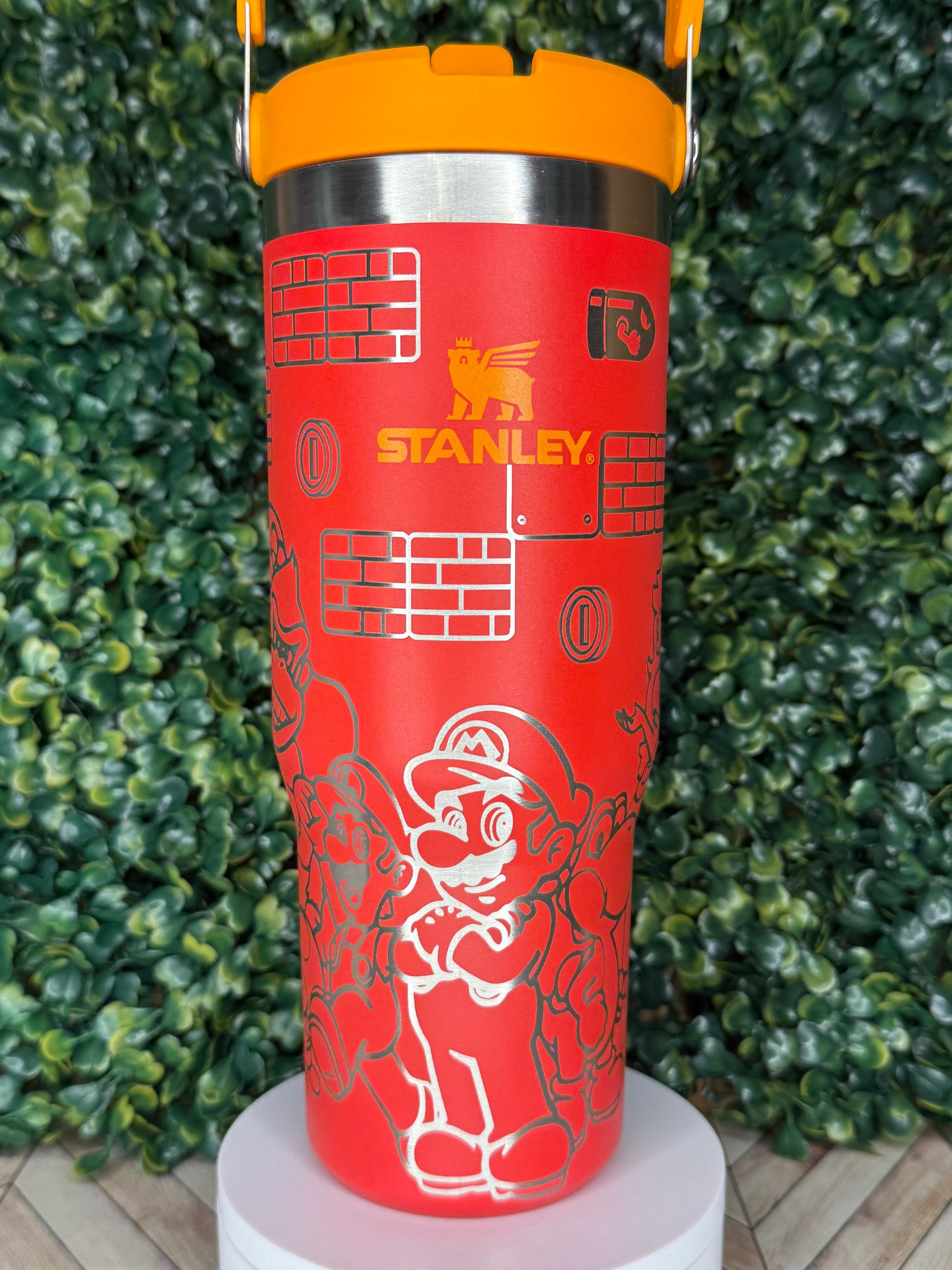 Super Mario Bros Engraved Tumbler - Stanley IceFlow 30oz Flip Straw